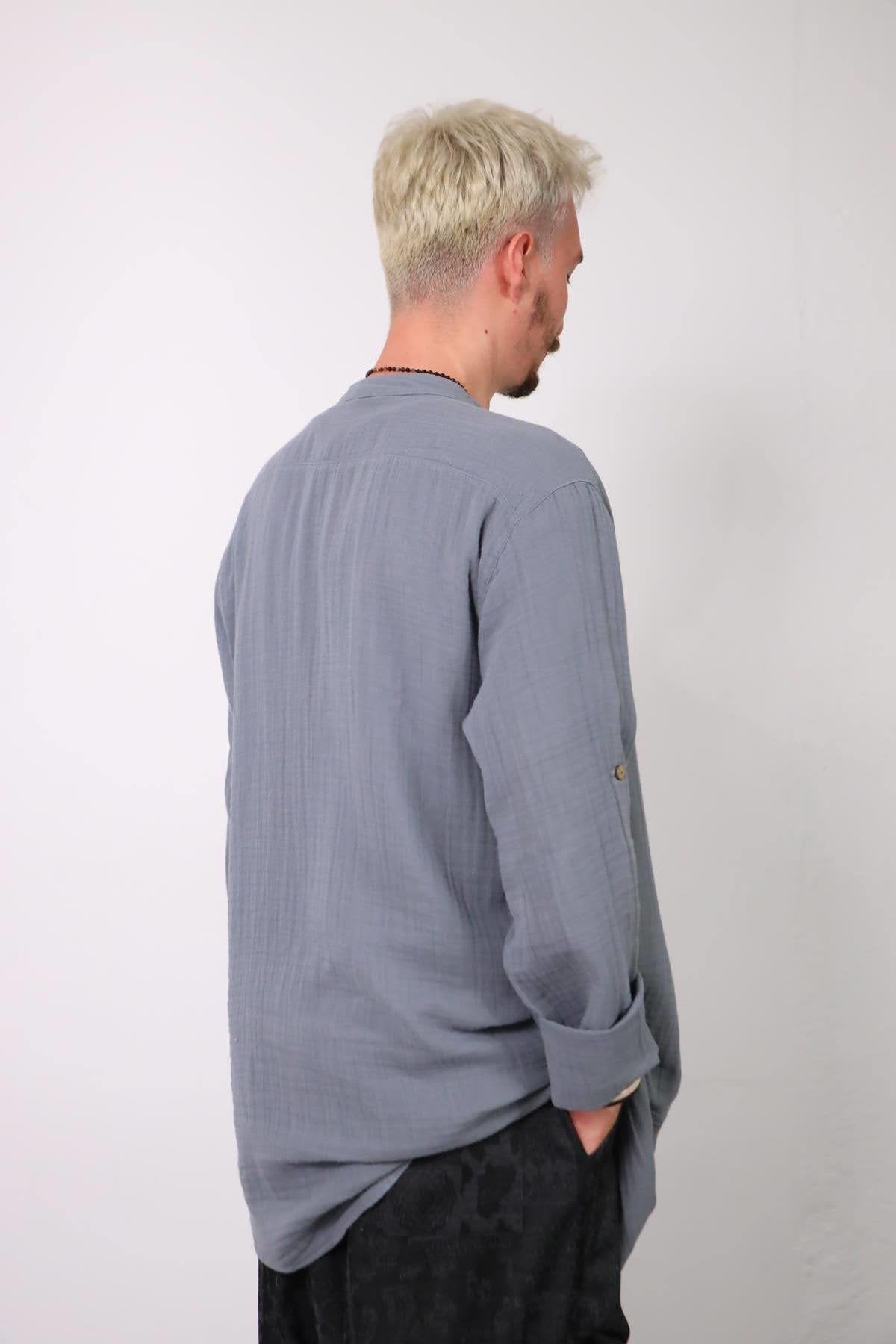 Anthracite Mandarin Collar Muslin Men's Shirt