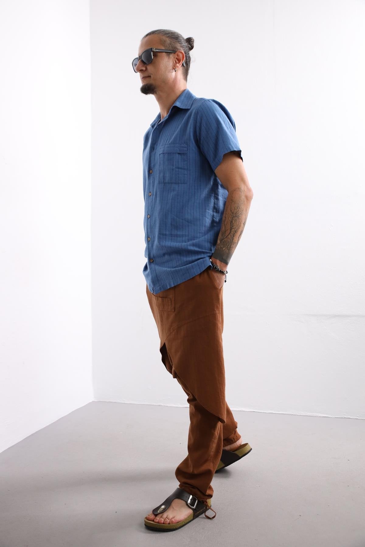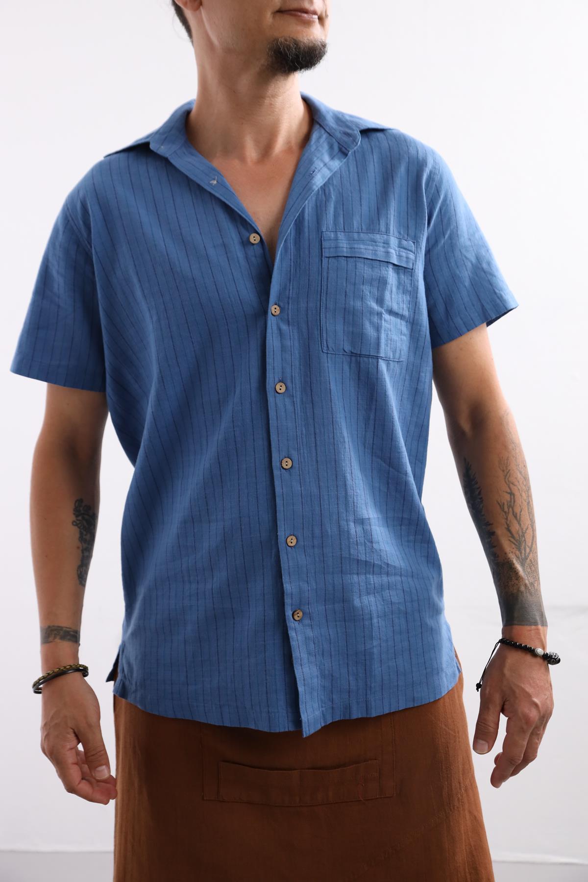 Blue Relaxed Fit Striped Men's Shirt