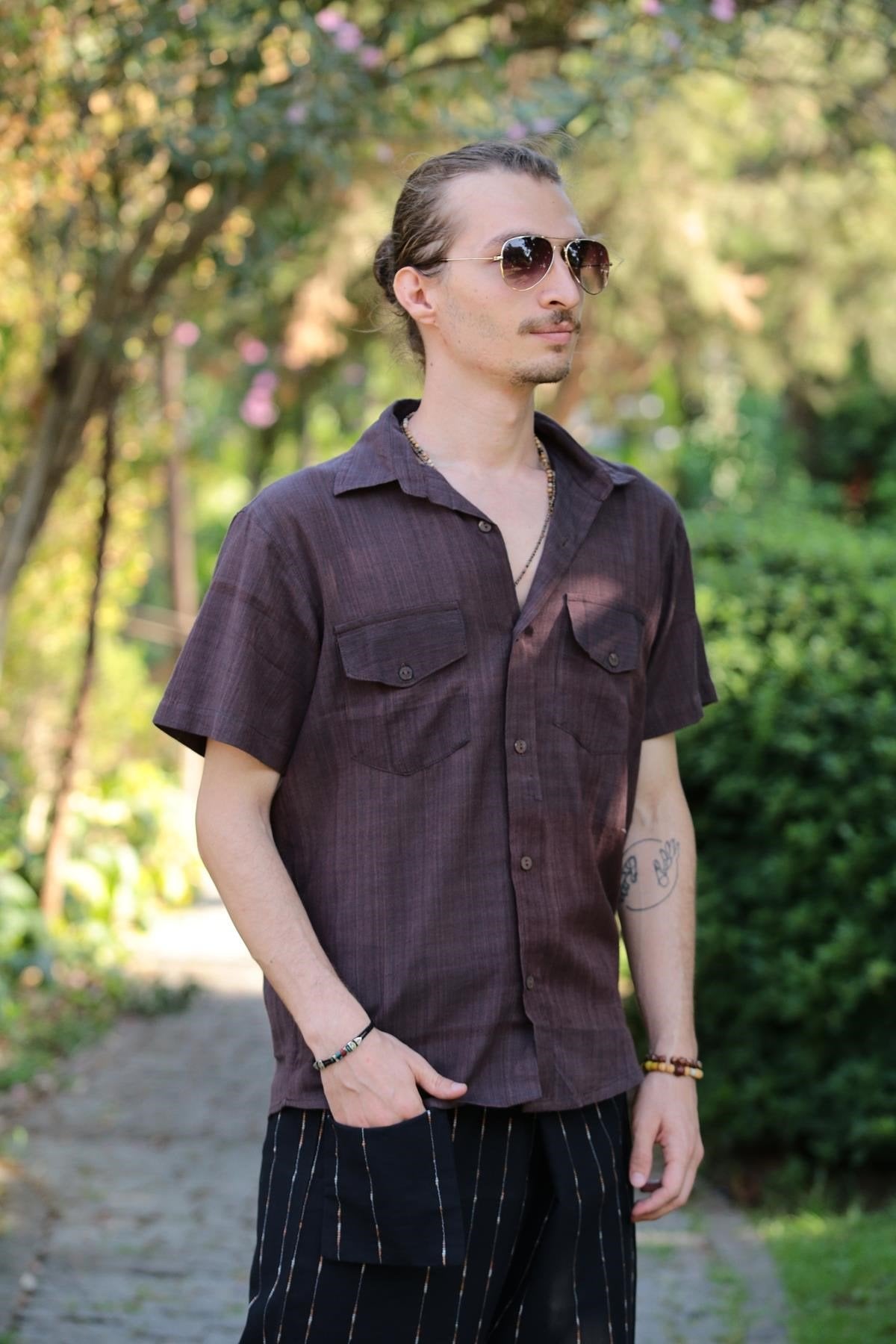 Brown Short-Sleeved Shirt with Pockets