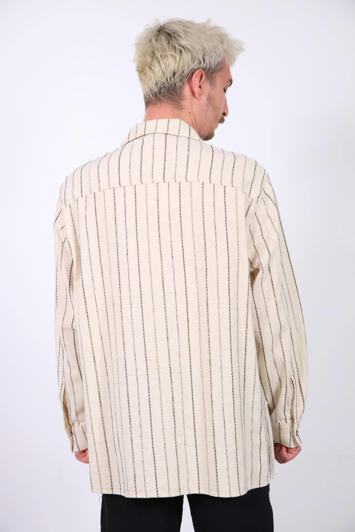 Cream-Colored Striped Men's Shirt
