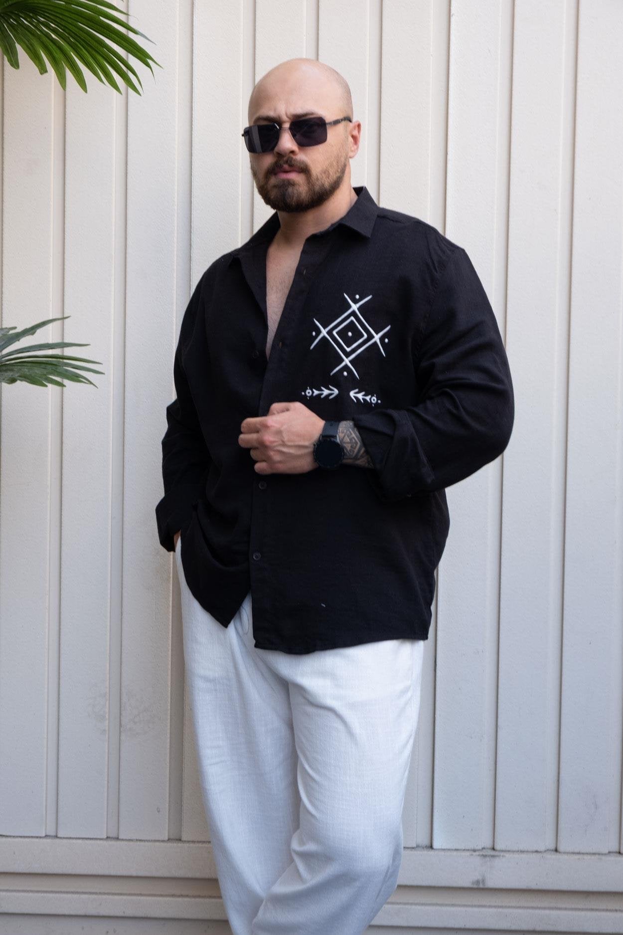 Artisan Embroidered Linen Casual Relaxed Shirt