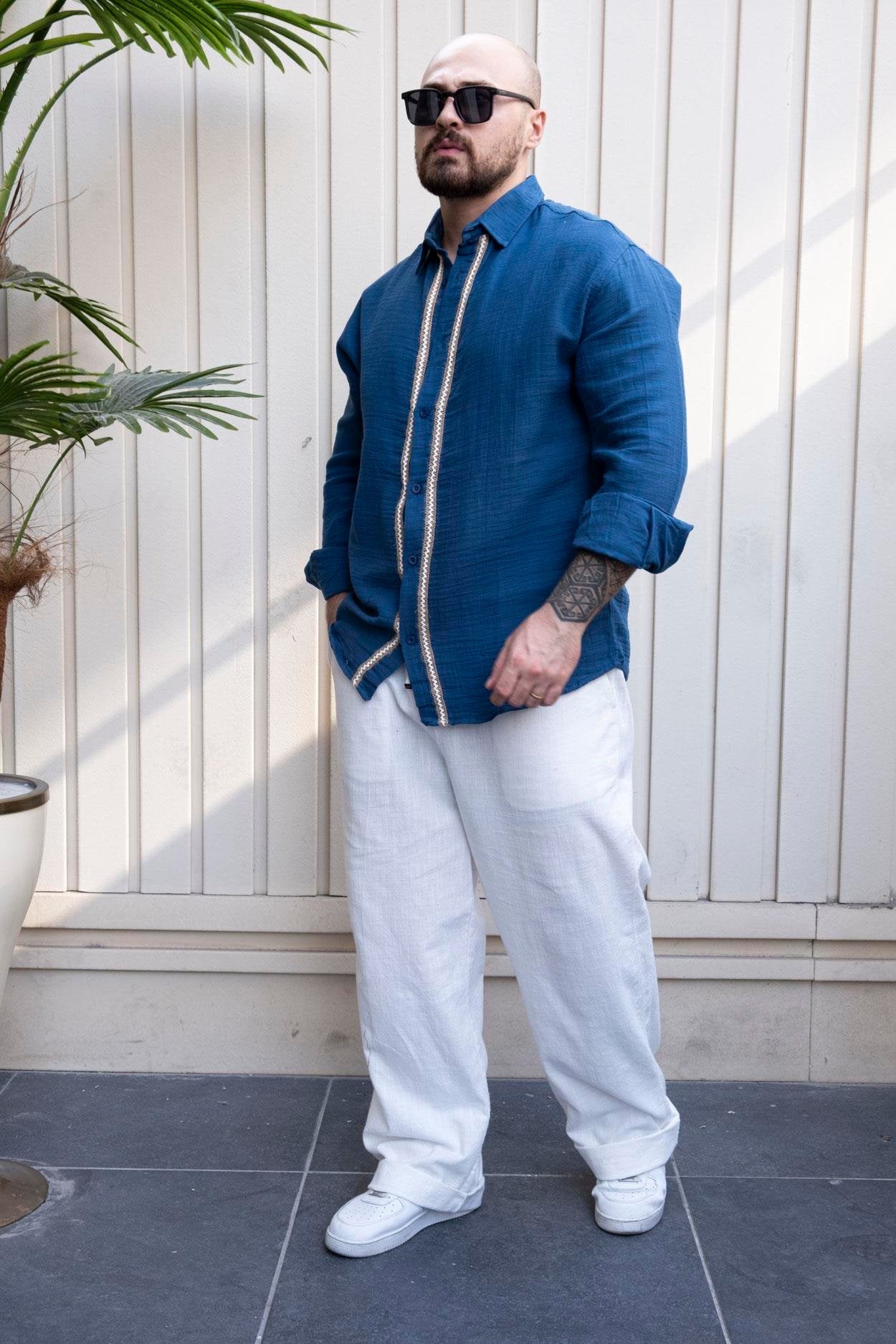Linen Fabric Shirt with Woven Details (SNPAM02)