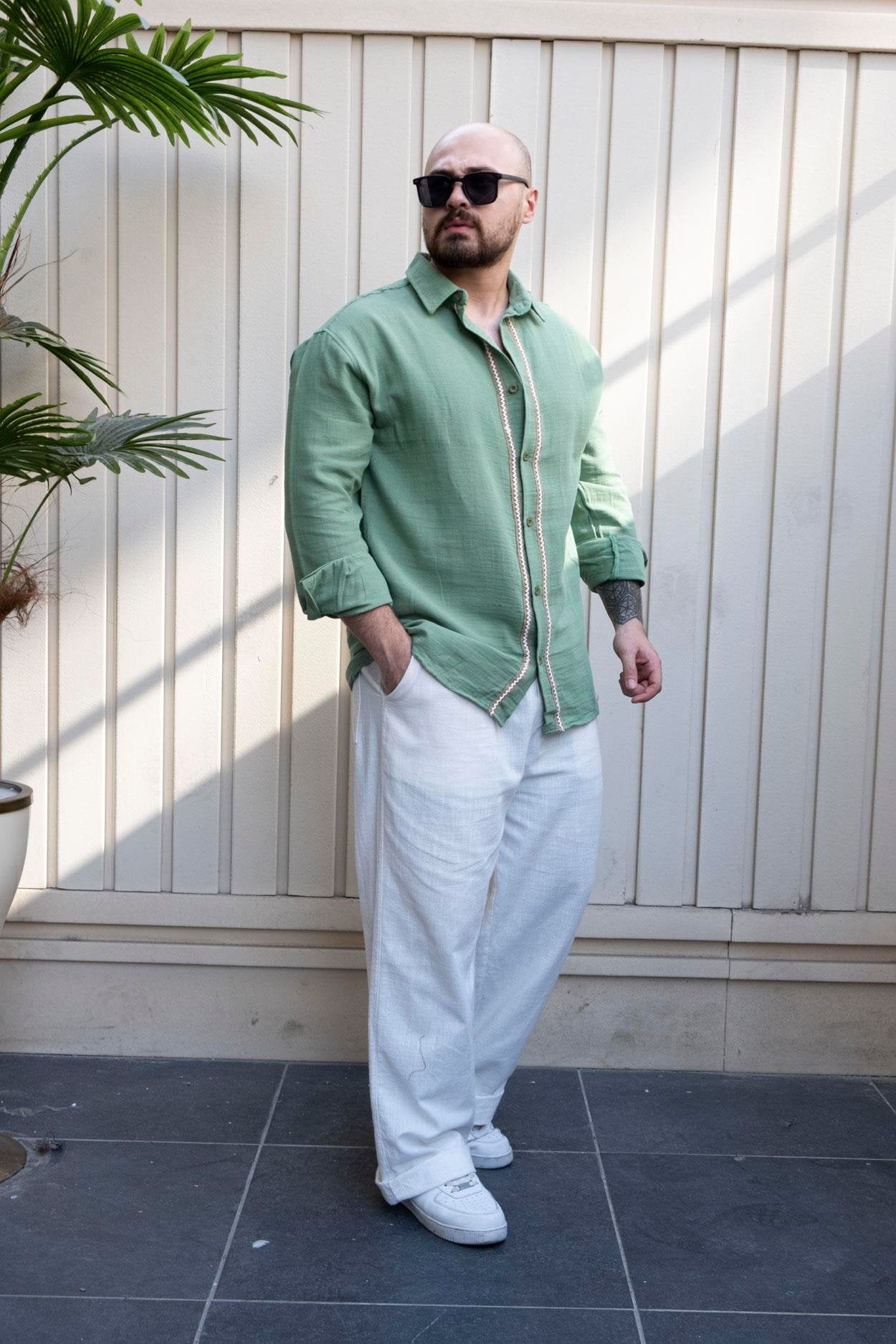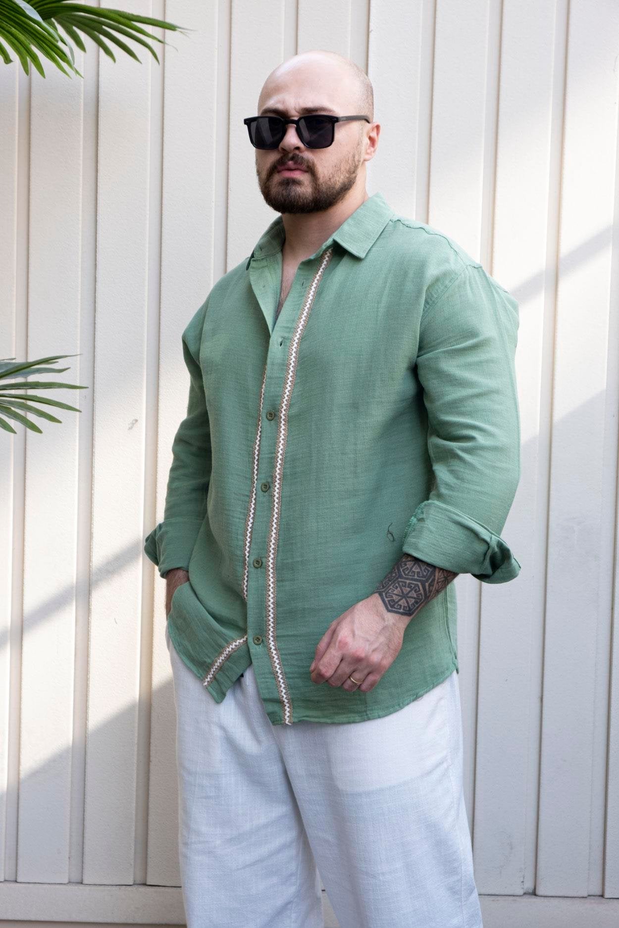 Crafted Linen Fabric Shirt with Decorative Woven Detail