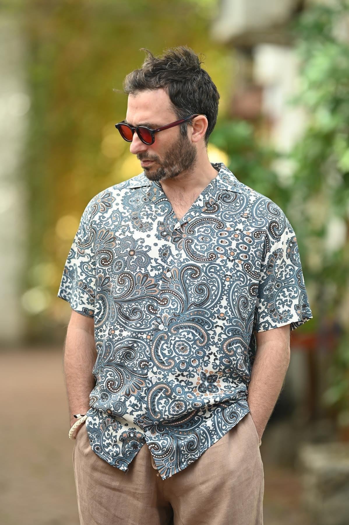 Petrol Blue Patterned Short Sleeve Men's Shirt