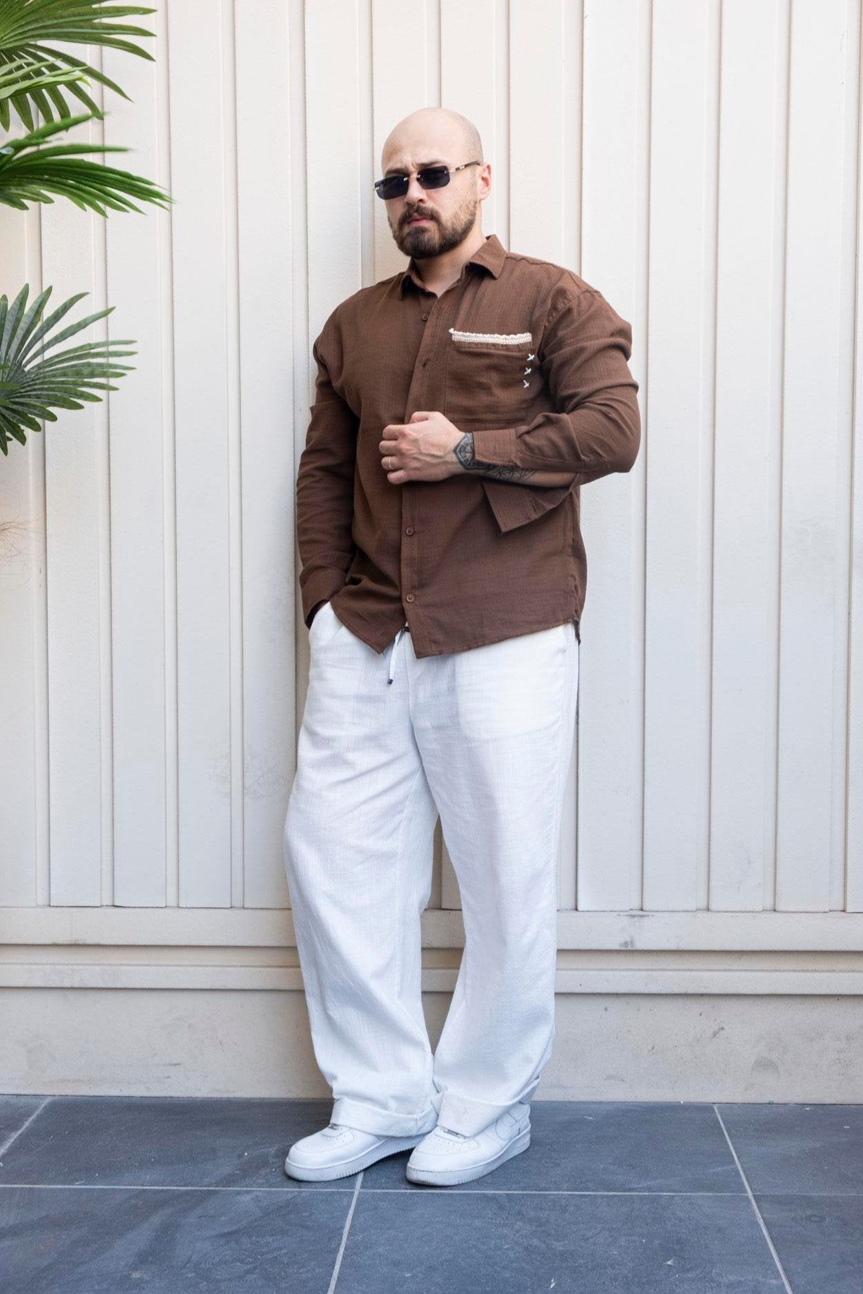 Signature Relaxed Fit 100% Cotton Shirt with Woven Embroidery