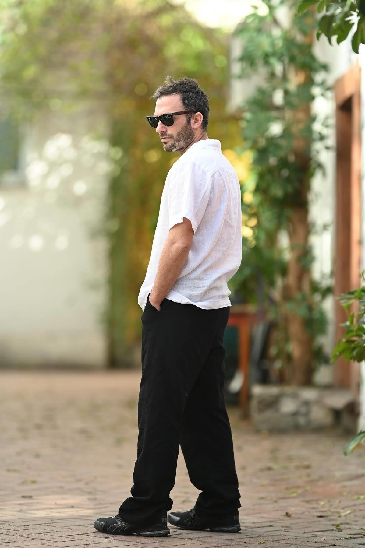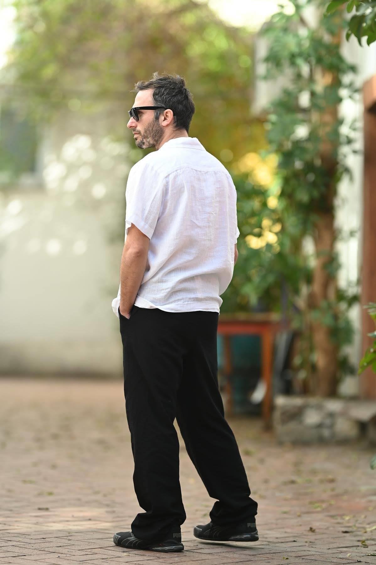 White Blazer Collar Short Sleeve Linen Men's Shirt